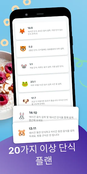 - 식사 패턴과 단식 시간에 따른 몸무게 변화를 그래프로 한눈에 확인할 수 있어요