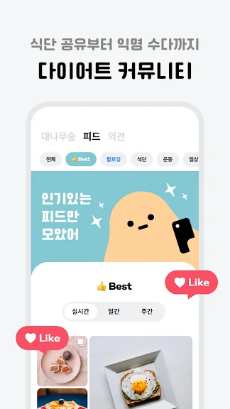 - 내 식단과 레시피, 일상, 운동, 눈바디, 자극짤까지 피드로 간편하게 공유할 수 있어요